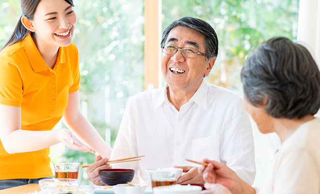 個人の自由な暮らしと経済面の負担を考慮した賃貸物件でありながら、食事や健康管理など、高齢者に必要なサービスを備え、医療機関とも連携。入居者はもちろん、ご家族も安心できる暮らしをお手伝いします。